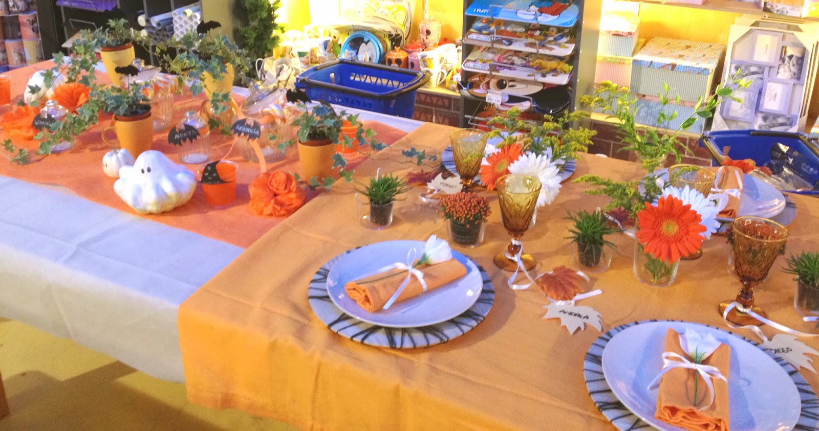 Abbiamo allestito dal vivo due tavole , la prima più tradizionale e la seconda pensata invece per una festa di bambini o un informale aperitivo di Halloween con gli amici.